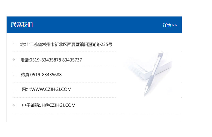 傳真:0519-83435688    郵編:213135    網(wǎng)址:WWW.czjhgj_com.bio-midas.com    電子郵箱:JH@czjhgj_com.bio-midas.com